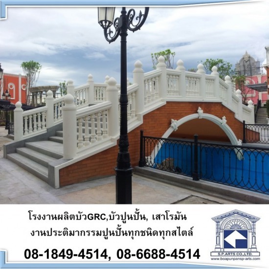 ผลิตเสาปูนปั้น GRC   บริการครบวงจร งานเสาปูนปั้น GRC รับออกแบบ ผลิต จัดส่งและติดตั้ง โดยโรงงานผลิตเสาโรมัน บัวปูนปั้น GRC นครปฐม โรงงานผลิตเสาโรมัน บัวปูนปั้น GRC ชั้นแนวหน้าของไทย เสาปูนปั้น GRC (Glassfibre Reinforced Concrete) คือ คอนกรีตเสริมใยแก้ว ทำขึ้นมาจากซีเมนต์, ทราย, น้ำ และใยแก้ว (AR Glassfibre) ใช้ศักยภาพของใยแก้ว แทนการใช้เสริมกำลังด้วยเหล็ก จึงรับแรงดัด-แรงดึงได้ เอื้อประโยชน์ให้ชิ้นงานมีความบางได้เพียงแค่ 6 มม. และให้คุณสมบัติคล้ายคอนกรีต เสาปูนปั้น GRC ที่เป็นผลงานของบริษัท เอส.พี.อาร์ต จำกัด จะถูกออกแบบและสร้างสรรค์โดยทีมช่างชำนาญการ สวยงาม คงทน แข็งแรง ตามแบบที่ลูกค้าต้องการ สอบถามข้อมูล-สเปคสินค้าเพิ่มเติมเกี่ยวกับงานเสาโรมัน แบบเสาโรมัน หัวเสาโรมัน เสาปูนปั้น งานบัวปูนปั้นร่วมสมัย งานบัวสั่งทำ รูปปั้น กระถาง น้ำพุ ลูกกรง ซุ้มโค้ง ได้ที่ โรงงานผลิตเสาโรมัน บัวปูนปั้น GRC นครปฐม บริษัท เอส.พี.อาร์ต จำกัด ติดต่อสอบถามโทร 08-1849-4514